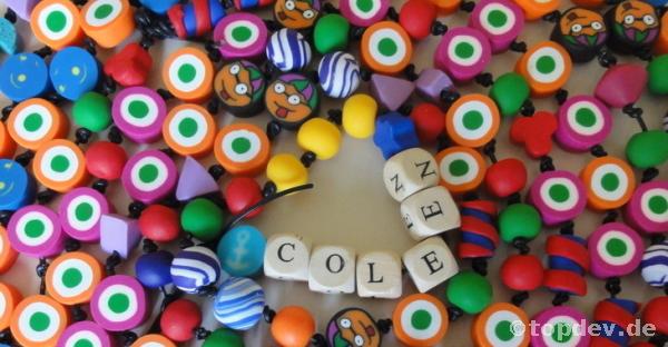 Die Perlen können sie auf eine langes Schnur auffädeln. So entsteht ein