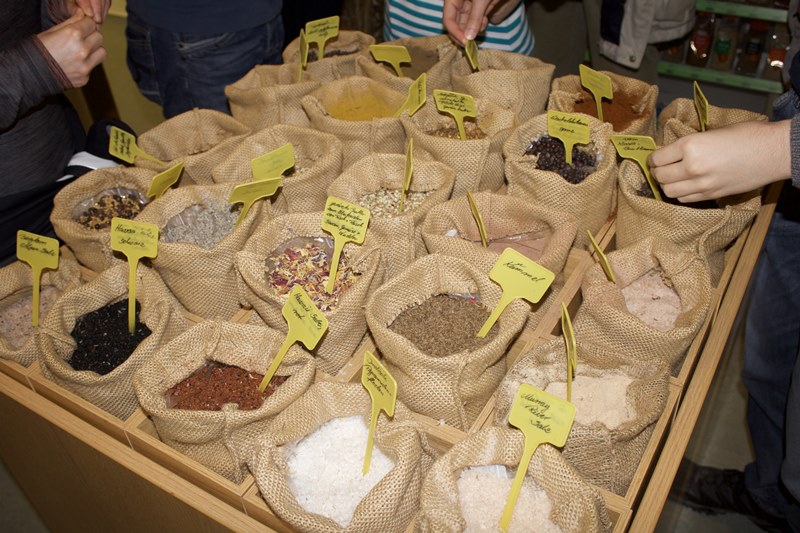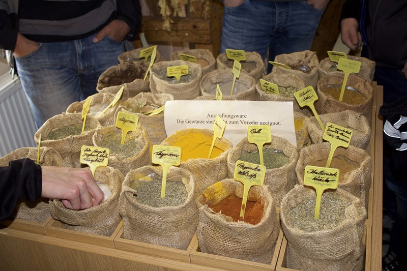 Schon beim Betreten des Museums empfingen uns die verschiedensten Düfte aus der ganzen Welt. Wir erhielten von einer Mitarbeiterin eine kleine Entdeckungsreise durch die Welt der Gewürze. Nebenbei wurden wir über unsere eigenen Gewürzkenntnisse befragt und die aufgestellten Gewürzbäume mit einem Wissenstest fanden reges Interesse. Fühlen, anfassen und riechen war hier selbstverständlich erlaubt!