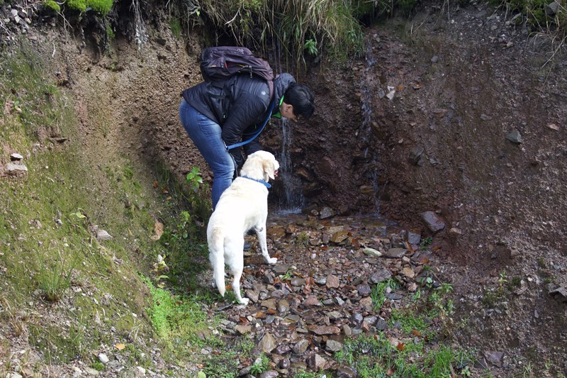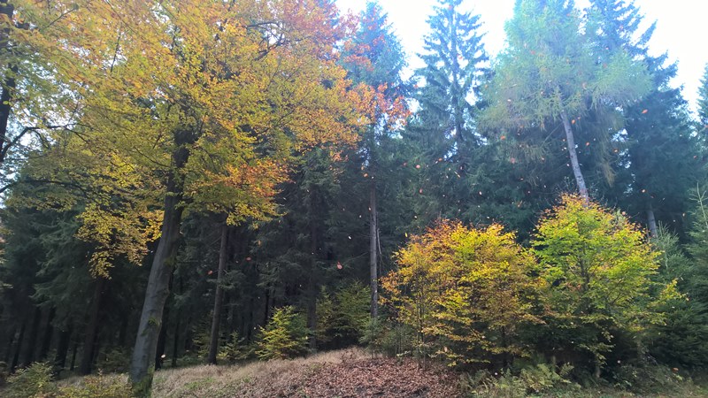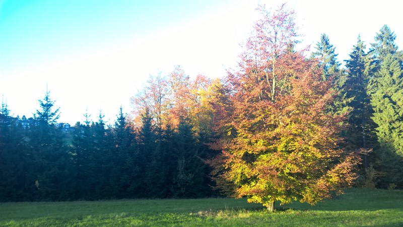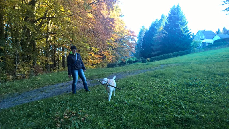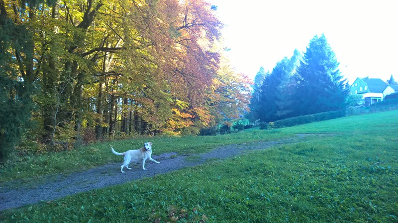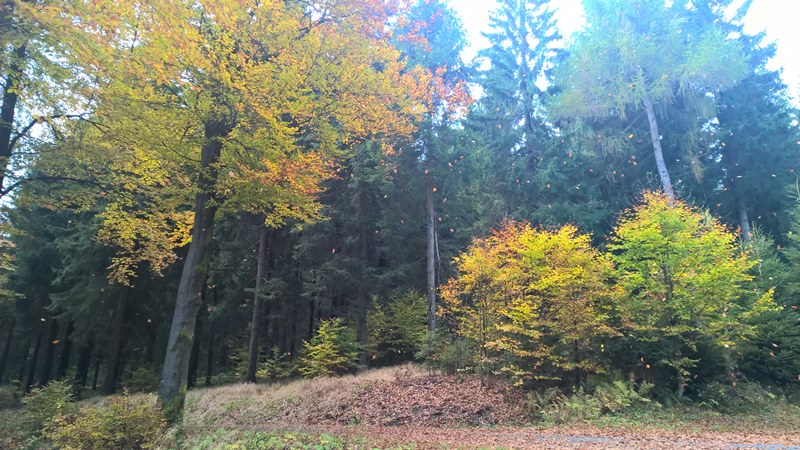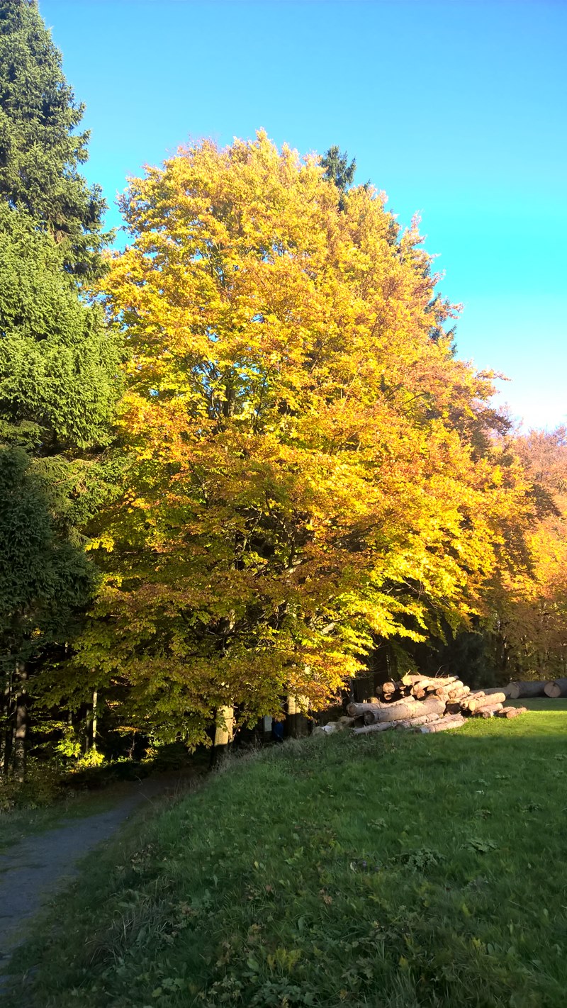 Nach diesem informativen Besuch fuhren wir direkt nach Masserberg zum Wandern. Unser Ziel war die Werraquelle, die wir über einen Rundwanderweg erreichen wollten. Auf dem Parkplatz in Masserberg merkte Silke plötzlich, dass sie ihre Jacke im Gewürzmuseum vergessen hatte. Nur gut, dass Thomas Reserven im Auto hatte und Silke nicht frieren musste. Das Wetter war uns hold. Blauer Himmel und der Herbst zeigte sich in seinen schönsten Farben. Die Werraquelle entspringt hier in rund 800m NN südlich des Eselsbergs. Seit Jahrzehnten streitet man über die eigentliche Quelle der Werra. Nicht weit vom Bleßberg bei Siegmundsburg, an der Nahtstelle vom Thüringer Wald zum Thüringer Schiefergebirge, entspringt der zweite Arm der Werra. Einheimische sprechen von der "echten" und der "falschen" Werraquelle. Auch heute noch wird so manche Wortschlacht zwischen Fehrenbachern und Siegmundsburgern geführt. Mehrere Untersuchungen und Gutachten wurden auf Grund der Streitigkeiten in Auftrag gegeben. Diese konnten jedoch keine eindeutige Klärung herbeiführen.