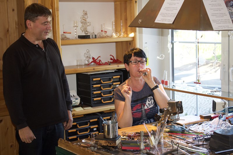 Aber was wäre Masserberg, ohne einen Glasbläser besucht zu haben! So begaben wir uns in die Kreativglasbläserei Sachs. Von Herrn Sachs persönlich erhielten wir eine kleine Einführung in seine Arbeit