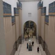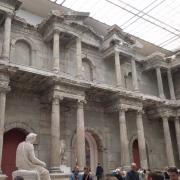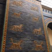 Dort begann unsere Führung, nachdem wir unser Hab und Gut abgegeben hatten. Beim Betrachten des Tores von Ischtar, welches mit den original glasierten Tonziegeln und seinen wunderschönen Silhouetten von Drachen, Löwenbullen und mythologischen Wesen gebaut wurde, waren wir beeindruckt und konnten nur aufmerksam den Erklärungen unseres Museumsführers zuhören. Die kuriose Geschichte, die sich hinter dem Tor entpuppte, ist der babylonischen Göttin der Liebe und des Krieges gewidmet.