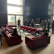 Gut gestärkt und gespannt machten wir uns auf den Weg in Richtung des politischen Zentrums der Stadt, den Reichstag. An diesem Ort werden viele wichtige Entscheidungen für Deutschland getroffen. Jedoch mussten wir vor dem Eintritt in den Reichstag einige strenge Kontrollen durchlaufen und erst dann haben wir die Erlaubnis erhalten, als Besucher einzutreten. Nachdem wir eine lange Treppe erklommen hatten, wurden wir von einem Bundestagsmitarbeiter begrüßt, der uns empfing mit den Worten: „Ich beantworte die häufigste Frage“, machte eine Pause und fügte mit einem Lächeln hinzu „… es ist erlaubt, Bilder zu machen“. Dann begann die Führung.