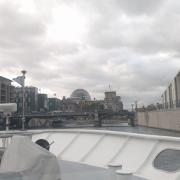 Leider hatten wir nach der Führung nicht mehr genug Zeit, um die frisch geputzte Kuppel zu besichtigen, denn unser Schiff für die Stadtrundfahrt auf der Spree würde nicht warten. Somit machten wir uns auf den Weg und kamen auch pünktlich an der Anlegestelle an. Auf dem Weg dahin ist das spanische Wort „captura“, was im Deutschen gleichbedeutend mit „erfassen“ oder in unserem Fall „mach ein Foto“, mehrmals gefallen und gewann auch zunehmend an Bedeutung, zumindest für Yamilka und Alex. Denn es mussten auch ein paar Erinnerungsbilder geschossen werden!