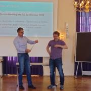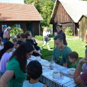 Die Mitarbeiter nebst Partner und Kinder folgten zahlreich der Einladung und lernten sich am Donnerstagabend bei einem edlen 3 Gang-Menü untereinander (besser) kennen. Während die Mitarbeiter den Freitag mit den vielfältigen Projekten und wortgewandten Diskussionen verbrachten, konnten sich die mitgereisten Angehörigen auf einer Fahrradtour oder Kremserfahrt mit dem Pferdewagen die Umgebung anschauen und schon die eine oder andere Gurke verkosten. Im Museumsdorf Lehde wurde dabei auf althergebrachte weise Butter hergestellt. Der Nachmittag bot Zeit für den wunderschönen Schlosspark oder einen kurzen Spaziergang zur Gurkenmeile, wo es natürlich auch andere Köstlichkeiten, wie frische Fischbrötchen oder leckeres Eis, gab.
