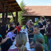 Am Samstag starteten wir gemütlich mit einer Kahnfahrt nach Lehde. Dort konnte jeder nach Herzenslust sein eigenes Programm finden, einige erkundeten das Museumsdorf, andere feilten an ihrem künstlerischen Talent bei der Tradition des sorbischen Eierbemalens und wieder andere spazierten an den Fließen vorbei zu einer Gaststätte, um dort Spreewälder Spezialitäten wie Kartoffeln, Quark und Leinöl oder Fisch zu verkosten inklusiver einer Gurkenlimo. So oder so hatte jeder seinen Spaß und es ging wieder auf dem Kahn zurück nach Lübbenau. Dass wir die ganze Zeit ein mega Wetter hatten, muss ich nicht extra erwähnen, oder? Das wurde natürlich von den Chefs höchstpersönlich gebucht. Auch die Abbestellung der Mücken klappte hervorragend.