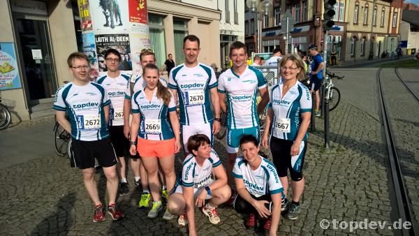 Altstadt zu absolvieren. Mit etwas personeller Läuferunterstützung gingen wir mit 9 Teilnehmern an den Start. Wetterbedingt gab die Schirmherrin, Eisschnelllauf-Olympiasiegerin Gunda