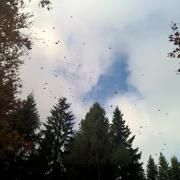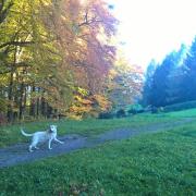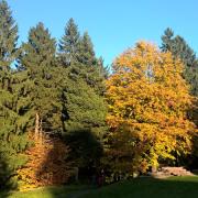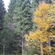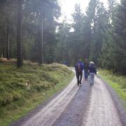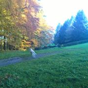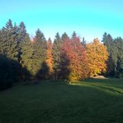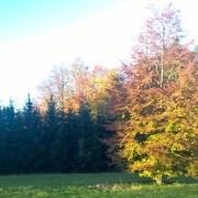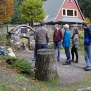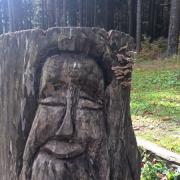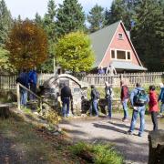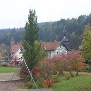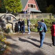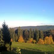 Nach diesem informativen Besuch fuhren wir direkt nach Masserberg zum Wandern. Unser Ziel war die Werraquelle, die wir über einen Rundwanderweg erreichen wollten. Auf dem Parkplatz in Masserberg merkte Silke plötzlich, dass sie ihre Jacke im Gewürzmuseum vergessen hatte. Nur gut, dass Thomas Reserven im Auto hatte und Silke nicht frieren musste. Das Wetter war uns hold. Blauer Himmel und der Herbst zeigte sich in seinen schönsten Farben. Die Werraquelle entspringt hier in rund 800m NN südlich des Eselsbergs. Seit Jahrzehnten streitet man über die eigentliche Quelle der Werra. Nicht weit vom Bleßberg bei Siegmundsburg, an der Nahtstelle vom Thüringer Wald zum Thüringer Schiefergebirge, entspringt der zweite Arm der Werra. Einheimische sprechen von der "echten" und der "falschen" Werraquelle. Auch heute noch wird so manche Wortschlacht zwischen Fehrenbachern und Siegmundsburgern geführt. Mehrere Untersuchungen und Gutachten wurden auf Grund der Streitigkeiten in Auftrag gegeben. Diese konnten jedoch keine eindeutige Klärung herbeiführen.