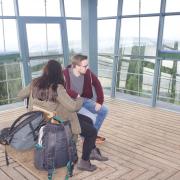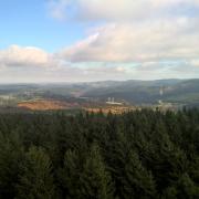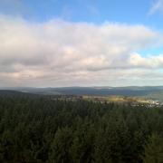 Kurz vor Ende des Rundweges erreichten wir die bekannte Rennsteig-Turmbaude in einer Höhe von 830 Metern. Einige stiegen die Treppen hinauf, um den wunderschönen Blick über den Thüringer Wald zu genießen und Fotos zu machen.
