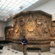 Insgesamt ist das Museum ein unglaublicher Ort, an dem man Stunden verbringen und von den verschiedenen Kulturen lernen und entdecken kann. Wie zum Beispiel das islamische Museum, eine große Sammlung von Teppichen und der Damaskus-Kalifat mit Porzellan und Dekorationen im Innenraum, sowie der Mschatta-Fassade mit ihren viele kleinen detaillierten Mustern und dem Aleppo-Zimmer, in dem wir uns auf die Suche nach dem christlichen Motiv von Maria, die Jesus in den Armen hält, begaben.