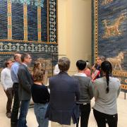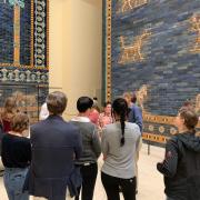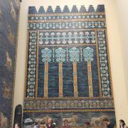 Dort begann unsere Führung, nachdem wir unser Hab und Gut abgegeben hatten. Beim Betrachten des Tores von Ischtar, welches mit den original glasierten Tonziegeln und seinen wunderschönen Silhouetten von Drachen, Löwenbullen und mythologischen Wesen gebaut wurde, waren wir beeindruckt und konnten nur aufmerksam den Erklärungen unseres Museumsführers zuhören. Die kuriose Geschichte, die sich hinter dem Tor entpuppte, ist der babylonischen Göttin der Liebe und des Krieges gewidmet.