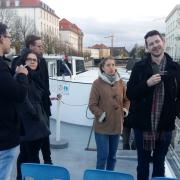 Leider hatten wir nach der Führung nicht mehr genug Zeit, um die frisch geputzte Kuppel zu besichtigen, denn unser Schiff für die Stadtrundfahrt auf der Spree würde nicht warten. Somit machten wir uns auf den Weg und kamen auch pünktlich an der Anlegestelle an. Auf dem Weg dahin ist das spanische Wort „captura“, was im Deutschen gleichbedeutend mit „erfassen“ oder in unserem Fall „mach ein Foto“, mehrmals gefallen und gewann auch zunehmend an Bedeutung, zumindest für Yamilka und Alex. Denn es mussten auch ein paar Erinnerungsbilder geschossen werden!