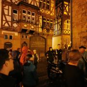 Wir zogen durch die engen, verwinkelten Gassen, besuchten den Schuhmarkt mit der ältesten Kirche, die keine Kirche mehr ist, bestaunten das „Steinerne Haus“ mit einem besonderen Toilettenerker und liefen über die berühmte Wendelgasse. Beeindruckend fanden wir die sehr gut sanierten Fachwerkhäuser und das aufregende Nachtleben. Nach einer Stunde ging unsere Führung leider schon zu Ende. Gesehen hatten wir noch nicht alles, vor allem das Landgrafenschloss prangte schön beleuchtet über unseren Köpfen, ohne dass wir es aus der Nähe betrachtet hatten, aber vielleicht bietet sich diese Gelegenheit ja beim nächsten Mal.