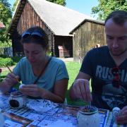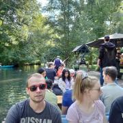 Am Samstag starteten wir gemütlich mit einer Kahnfahrt nach Lehde. Dort konnte jeder nach Herzenslust sein eigenes Programm finden, einige erkundeten das Museumsdorf, andere feilten an ihrem künstlerischen Talent bei der Tradition des sorbischen Eierbemalens und wieder andere spazierten an den Fließen vorbei zu einer Gaststätte, um dort Spreewälder Spezialitäten wie Kartoffeln, Quark und Leinöl oder Fisch zu verkosten inklusiver einer Gurkenlimo. So oder so hatte jeder seinen Spaß und es ging wieder auf dem Kahn zurück nach Lübbenau. Dass wir die ganze Zeit ein mega Wetter hatten, muss ich nicht extra erwähnen, oder? Das wurde natürlich von den Chefs höchstpersönlich gebucht. Auch die Abbestellung der Mücken klappte hervorragend.